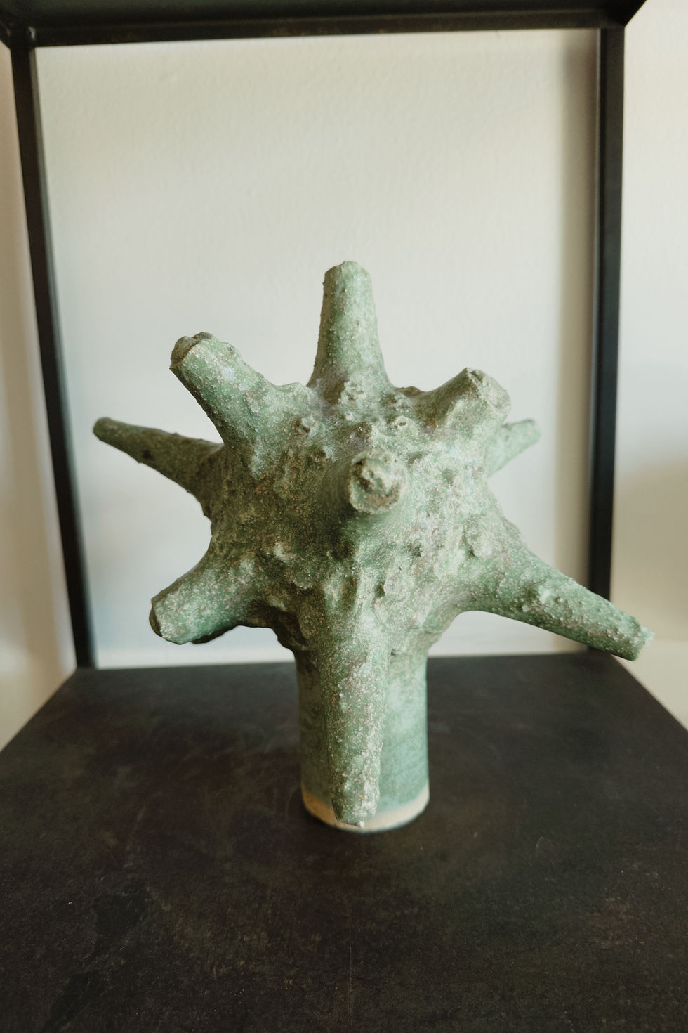 Clement Leonardo trained at The School for American Craftsmen at the Rochester Institute of Technology, where he studied clay, glass, wood, metal, and textiles. Clement lives and works in Los Angeles out of his home studio. His process is intuitive, sculptural, and deliberately untraditional. He forgoes sketches and drawings, working directly from vision. Forms are built over several days from hand-pressed and slab-formed parts; carving and coiling have no place in his practice. Instead, his focus is on exaggerated silhouettes and protruding elements, each piece approached as a singular work. Repetition holds little appeal—his curiosity is always fixed on the next idea. Leonardo’s ceramics are made for environments with a strong sense of character—spaces shaped by designers or collectors who value bold, distinctive presence. His work resists mass production, instead embracing the individuality and idiosyncrasy that come from making with both hands and instinct.