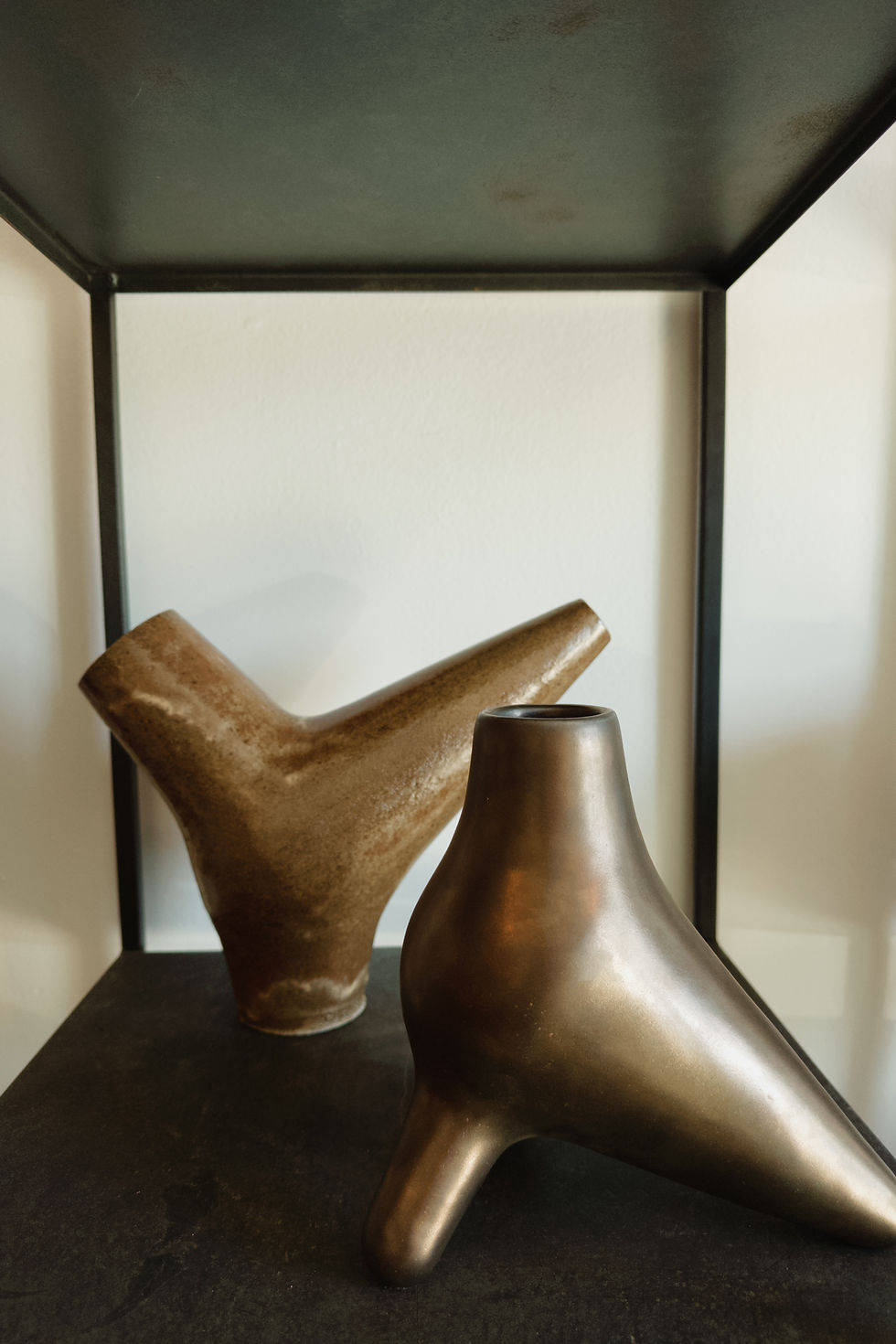 Clement Leonardo trained at The School for American Craftsmen at the Rochester Institute of Technology, where he studied clay, glass, wood, metal, and textiles. Clement lives and works in Los Angeles out of his home studio. His process is intuitive, sculptural, and deliberately untraditional. He forgoes sketches and drawings, working directly from vision. Forms are built over several days from hand-pressed and slab-formed parts; carving and coiling have no place in his practice. Instead, his focus is on exaggerated silhouettes and protruding elements, each piece approached as a singular work. Repetition holds little appeal—his curiosity is always fixed on the next idea. Leonardo’s ceramics are made for environments with a strong sense of character—spaces shaped by designers or collectors who value bold, distinctive presence. His work resists mass production, instead embracing the individuality and idiosyncrasy that come from making with both hands and instinct.