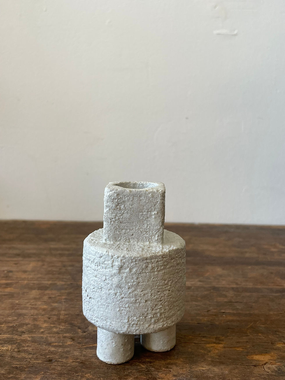 Clement Leonardo trained at The School for American Craftsmen at the Rochester Institute of Technology, where he studied clay, glass, wood, metal, and textiles. Clement lives and works in Los Angeles out of his home studio. His process is intuitive, sculptural, and deliberately untraditional. He forgoes sketches and drawings, working directly from vision. Forms are built over several days from hand-pressed and slab-formed parts; carving and coiling have no place in his practice. Instead, his focus is on exaggerated silhouettes and protruding elements, each piece approached as a singular work. Repetition holds little appeal—his curiosity is always fixed on the next idea. Leonardo’s ceramics are made for environments with a strong sense of character—spaces shaped by designers or collectors who value bold, distinctive presence. His work resists mass production, instead embracing the individuality and idiosyncrasy that come from making with both hands and instinct.